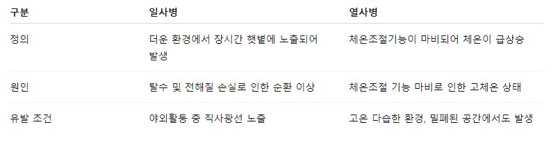 이 글에서는 열사병과 일사병의 차이를 쉽게 이해할 수 있도록 비교해보고, 예방 방법과 대처법까지 자세히 알려드리겠습니다.